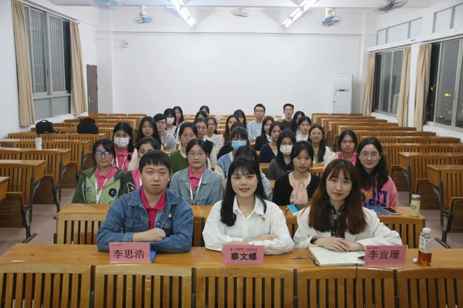 为全面提升广州商学院学生志愿服务水平,进一步开展志愿服务活动,更好地倡导“奉献、友爱、互助、进步”的志愿精神,推动志愿精神的接续传承,我院阳光展翅实践队于3月8日在三教104举行了2023年外国语学院阳光展翅实践队见面会。出席本次活动的有外国语学院团委书记蔡文蝶、团委学生副书记李宜珊、团委组织部部长李思浩以及阳光展翅实践队的全体队员。